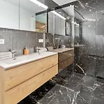 Luxus Chalet Max Lägenhet lägenhet erbjuder utsikt över poolen. Badrummen har badkar och dusch.