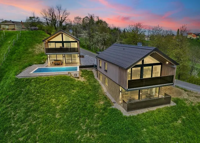 Graz flygplats kan nås på cirka 39 minuter med bil. På lägenheten Luxus Chalet Max Lägenhet hittar du en terrass med utsikt över bergen.